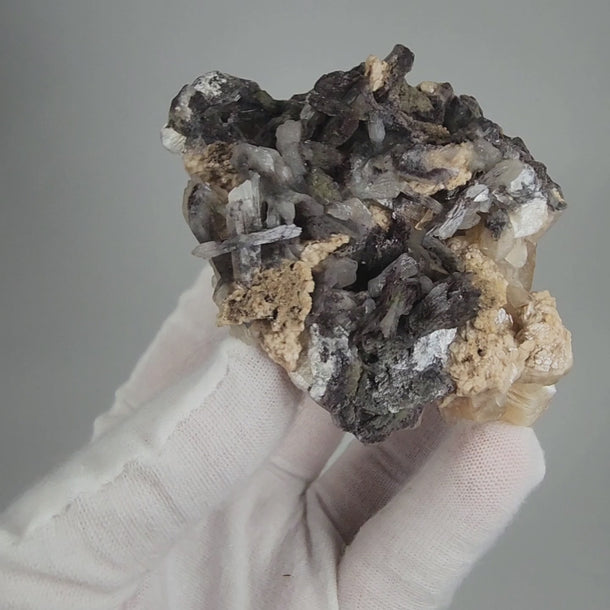 This was found in early 2024 in a water well. Hematite inclusions within the crystals give the specimens varying hues. Some specimens feature Hematite included Calcite as well. The Heulandite features an interesting formation, with a curvature and twisted look. This is what spawned the name Phoenix Flame as a trade name for this material.